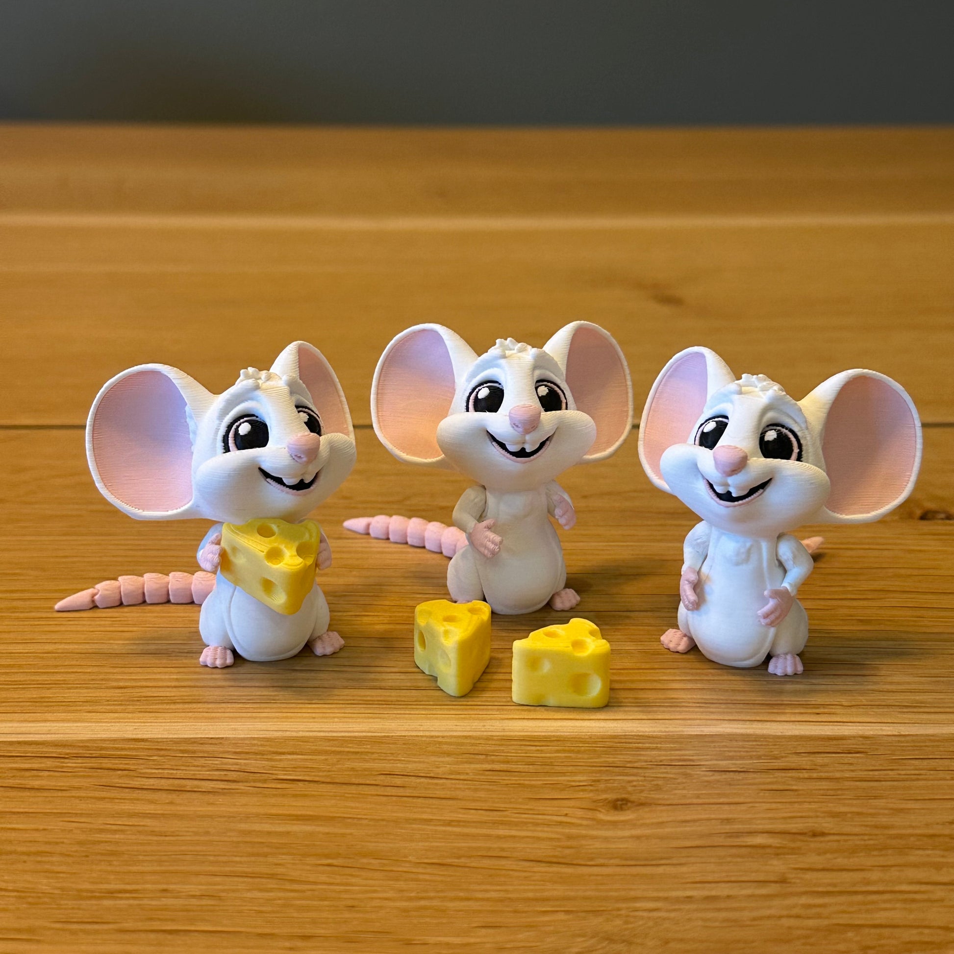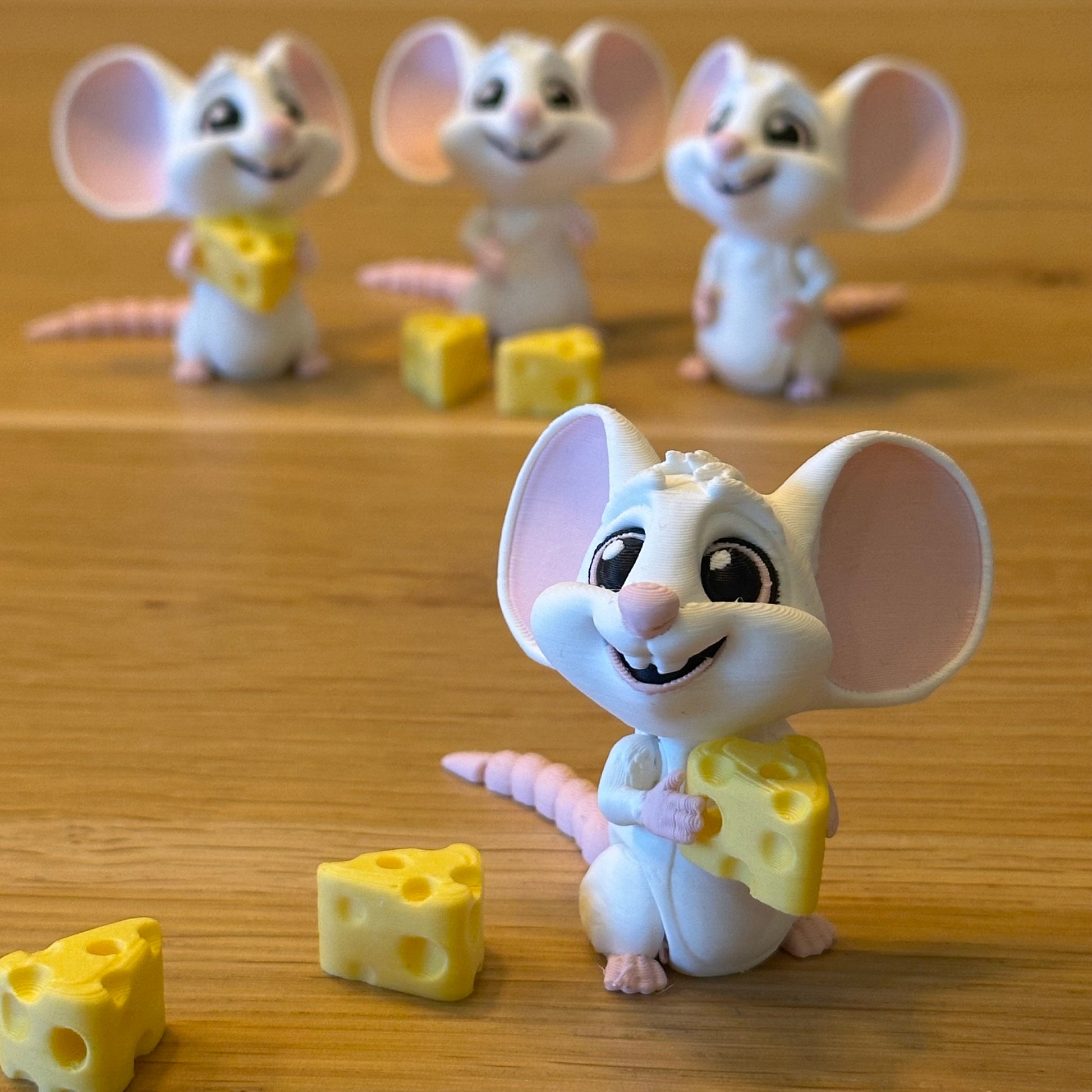 Super lief muisje, om neer te zetten of om mee te spelen. Inclusief een kaasje die het muisje kan vasthouden. Lichaamsdeeltjes kunnen in een positie worden neergezet!